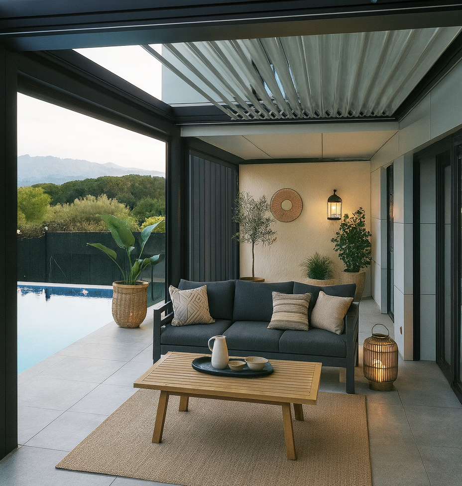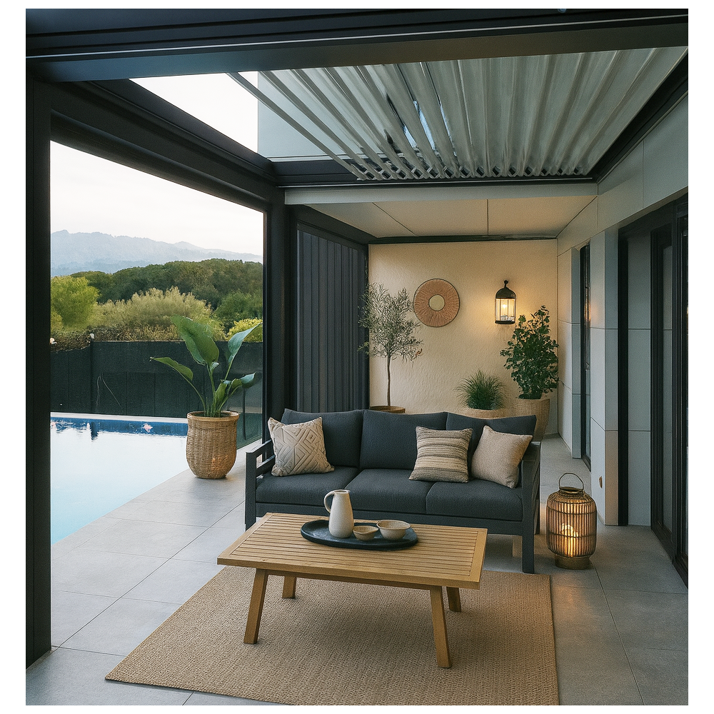 La pergola bioclimatique à lames orientables YUTA est une pergola bioclimatique rétractable dont les caractéristiques aussi bien technique qu'esthétique vous séduiront. 100% aluminium, la pergola YUTA offre la garantie d'une durabilité et d'un confort excellents quelques soient les conditions climatiques.